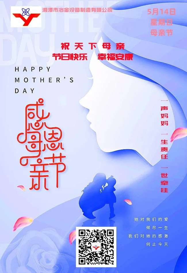 百善孝為先。孝心是對(duì)今天社會(huì)轉(zhuǎn)型期人際間情感疏離的感召,同時(shí)也是“湘冶”企業(yè)文化的重要內(nèi)容。值此母親節(jié)來(lái)臨之際,湘潭市冶金設(shè)備衷心祝愿天下母親節(jié)日快樂(lè)!幸福安康!